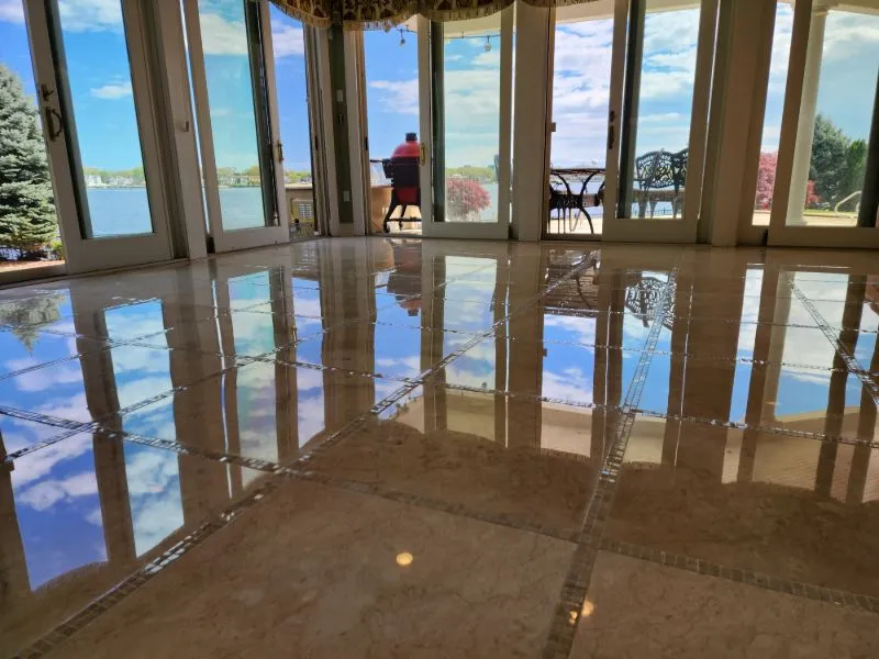 Professional polishing uses diamond abrasives and specialized equipment to remove a thin layer of damaged stone. This process restores clarity, brilliance, and smoothness. Polishing intensifies marble’s natural veining and color variation, making your floors and countertops look newly installed.